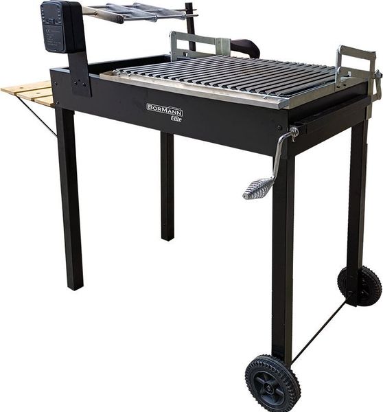 Η ψησταριά BORMANN Elite BBQ1980 προσφέρει επαγγελματικό ψήσιμο με άνεση και ευκολία! Διαθέτει ισχυρό μοτέρ για ομοιόμορφο γύρισμα της σούβλας, ενώ η ευρύχωρη επιφάνεια ψησίματος 55x41cm σας επιτρέπει να ετοιμάζετε γευστικά φαγητά με απόλυτο έλεγχο. Ο θάλαμος καύσης από ατσάλι 1,2mm και η σχάρα μαγειρέματος σχήματος V με επικάλυψη χρωμίου διασφαλίζουν ανθεκτικότητα και άριστα αποτελέσματα. Με δύο τροχούς 6 ιντσών και ξύλινο πλαϊνό ράφι, η μετακίνηση και η προετοιμασία γίνονται παιχνίδι! - Επιφάνεια ψησίματος: 55x41cm