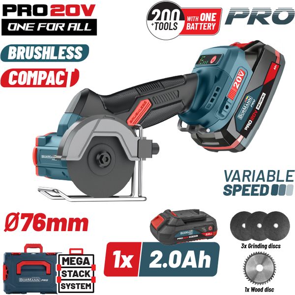BORMANN PRO BBP5418X2CA ΜINI BRUSHLESS ΓΩΝΙΑΚΟΣ ΤΡΟΧΟΣ ΡΥΘ/ΝΟΣ 20V, 0-7000/14000/20000RPM,1X2AH TLS.133814 BORMANN BORMANN ΤΡΟΧΟΙ