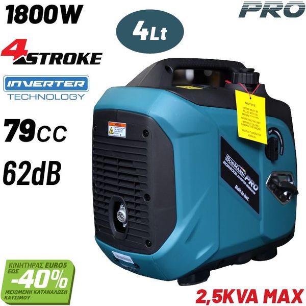 BORMANN PRO BGB2005 ΓΕΝΝΗΤΡΙΑ ΒΕΝΖΙΝΗΣ INVERTER 1800W,3KVA,76CC,62DB