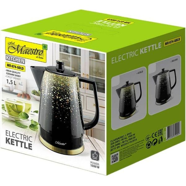 brastiras maestro ceramic electric kettle 15l 1500w gold black mr 074 gold extra photo 1