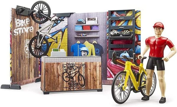 Με τα νέα θεματικά σετ μπορείτε να βουτήξετε ακόμα πιο βαθιά στον κόσμο του Bruder. Τα εκτυπωμένα στοιχεία τοίχου με ρυθμιζόμενα πόδια εύκολα στη συναρμολόγηση, δίνουν πλέον τον χώρο για ακόμα πιο αληθινή πραγματικότητα κατά το παιχνίδι. -Το νέο κατάστημα ποδηλάτων bworld από την BRUDER έχει όλα όσα θα περιμένατε από ένα σύγχρονο κατάστημα ποδηλάτων. Στο πλήρως εξοπλισμένο συνεργείο, τα ποδήλατα μπορούν να εξυπηρετηθούν πλήρως. Υπάρχουν βάσεις συναρμολόγησης και ένας πάγκος εργασίας με εργαλεία διαθέσιμα για το σκοπό αυτό. Στο κατάστημα, μπορείτε να περιηγηθείτε στα ράφια και να αναζητήσετε νέα αξεσουάρ ή ακόμα και ολοκληρωμένα ποδήλατα. Συμβουλές ειδικών παρέχονται από το bworld figure, το οποίο περιλαμβάνεται επίσης. -Το κατάστημα ποδηλάτων bworld μπορεί εύκολα να συνδυαστεί με τα άλλα σετ με θέμα τη bworld. Το bworld racing bike rider, το bworld mountain bike rider και το Jeep Wrangler Rubicon, καθώς και το roadster BRUDER με τα αντίστοιχα ποδήλατα είναι ιδιαίτερα ταιριαστές προσθήκες από τη μεγάλη ποικιλία Bruder. Περιλαμβάνει: Αγωνιστικό ποδήλατο και ποδήλατο βουνού, Συνεργείο ποδηλάτων με εκτεταμένο εξοπλισμό και εργαλεία, Κατάστημα ποδηλάτων με πλήρη εξοπλισμό καταστήματος, Πάγκος με ταμειακή μηχανή, Φιγούρα bworld.Προτεινόμενη ηλικία: κατάλληλη από 4 ετών και πάνω για παιχνίδι σε εσωτερικούς και εξωτερικούς χώρους. (Δεν είναι κατάλληλο για παιδιά κάτω των 36 μηνών.)Yλικό: υψηλής ποιότητας πλαστικά όπως ABS.Eγγύηση: 2 χρόνια.Εγγύηση: 2 χρόνια.