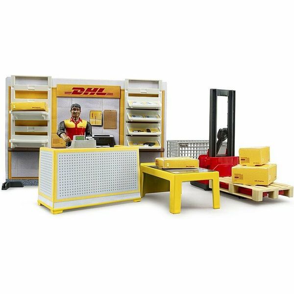 Το bworld είναι ο κόσμος των παιχνιδιών της BRUDER. Αποτελείται από κινούμενες φιγούρες, ζώα, αξεσουάρ και πιο πρόσφατα επίσης θεματικά σύνολα. Τα είδη bworld προσφέρουν ώρες διασκέδασης. Με τα νέα θεματικά σετ μπορείτε να βουτήξετε ακόμα πιο βαθιά στον κόσμο του Bruder. Εκτυπωμένα στοιχεία τοίχου με ρυθμιζόμενα πόδια εύκολα στην τοποθέτηση δημιουργούν τώρα το σκηνικό για ακόμα πιο ρεαλιστικό παιχνίδι. -Η DHL είναι ένας από τους κορυφαίους παρόχους υπηρεσιών logistics παγκοσμίως. Τώρα υπάρχει υποκατάστημα DHL από την BRUDER με εξοπλισμό και φιγούρα. Εδώ, τα δέματα μπορούν να παραληφθούν και να παραδοθούν, να αγοραστούν κιβώτια αποστολής και να χρησιμοποιηθούν άλλες υπηρεσίες. Ο υπάλληλος που περιλαμβάνεται στο σετ θα χαρεί να βοηθήσει με οποιεσδήποτε ερωτήσεις. Το κατάστημα DHL είναι το τέλειο συμπλήρωμα του νέου DHL Sprinter και, φυσικά, το κατάστημα DHL μπορεί εύκολα να συνδυαστεί με τα άλλα σετ. Περιλαμβάνει: Κατάστημα δεμάτων με πάγκο και ταμειακή μηχανή, Ζυγαριά δεμάτων, κιβώτιο ματιών και δέματα, Υπάλληλος καταστήματος DHL, Ράφι τοίχου με ράφι και θήκη.Προτεινόμενη ηλικία: κατάλληλη από 4 ετών και πάνω για παιχνίδι σε εσωτερικούς και εξωτερικούς χώρους. (Δεν είναι κατάλληλο για παιδιά κάτω των 36 μηνών.)Yλικό: υψηλής ποιότητας πλαστικά.Κλίμακα: 1:16.Eγγύηση: 2 χρόνια.Εγγύηση: 2 χρόνια.