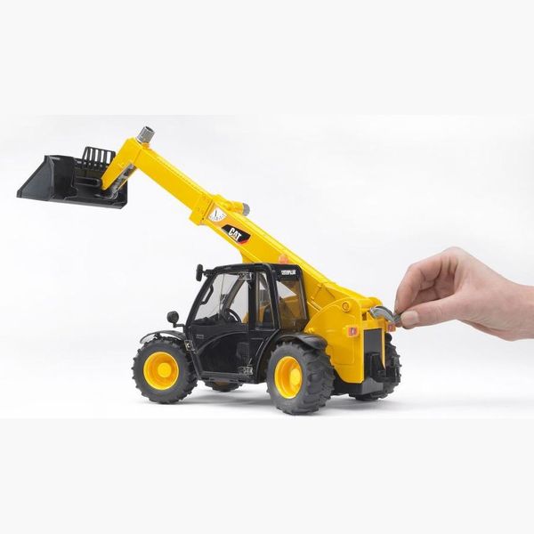 Παιχνίδι Cat Telehandler. Ελέγχεται προσεκτικά με τέσσερις τονισμένες ασημένιες λαβές περιστροφής. Εκτός από το ρυθμιζόμενο ύψος του βραχίονα, την επεκτασιμότητα και τη δυνατότητα αλλαγής της γωνίας της θήκης εργαλείου, το Telehandler διαθέτει πλήρως λειτουργικό σύστημα κατεύθυνσης σε τέσσερις τροχούς. -Ο τηλεσκοπικός βραχίονας εκτείνεται και το ύψος του ρυθμίζεται με το επάνω περιστροφικό κουμπί. -Η γωνία μπορεί να ρυθμιστεί χρησιμοποιώντας την ασημί λαβή περιστροφής. -Τετράτροχο τιμόνι με ασημί λαβή. Ηλικία: 3+. (Δεν είναι κατάλληλο για παιδιά κάτω των 36 μηνών).Υλικό: υψηλής ποιότητας πλαστικά όπως ABS.Κλίμακα: 1:16.Εγγύηση: 2 χρόνια. DOA 7 ημερών