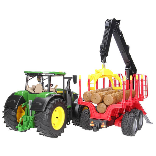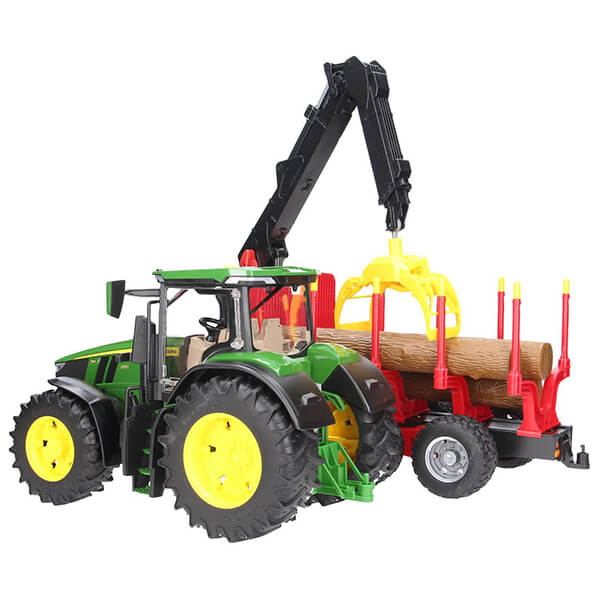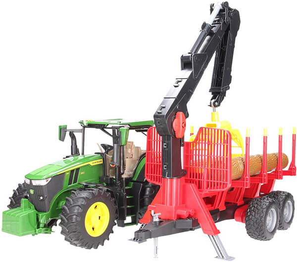 Τρακτέρ John Deere 7R 350 με καρότσα-γερανό και 4 κορμούς. Παιχνίδι φτιαγμένο με ρεαλιστική ακρίβεια το οποίο δίνει τη δυνατότητα στο παιδί να αναπαραστήσει αγροτικές και υλοτομικές εργασίες με δημιουργικότητα και φαντασία. -Είναι ευέλικτο και το παιδί μπορεί να χειρίζεται την κατεύθυνσή του από τον μοχλό του τιμονιού που προεξέχει από την οροφή. -Το καπό ανοίγει και αποκαλύπτει τον κινητήρα. -Η καμπίνα είναι μεγάλη και μπορεί να δεχθεί ανθρώπινες φιγούρες Bruder. -Η καρότσα διαθέτει γερανό που μπορεί να φορτώσει και να ξεφορτώσει τους κορμούς. -Οι τροχοί είναι ελαστικοί και μπορούν να κινηθούν με άνεση τόσο σε επίπεδο περιβάλλον, όσο και σε ανώμαλο. -Προτεινόμενη ηλικία: κατάλληλο από 4 ετών και πάνω για παιχνίδι σε εσωτερικούς και εξωτερικούς χώρους. -Δεν είναι κατάλληλο για παιδιά κάτω των 36 μηνών. Κίνδυνος πνιγμού - μικρά εξαρτήματα. -Κατασκευασμένο από υψηλής ποιότητας πλαστικά όπως ABS. Κατάλληλη ηλικία: από 4 χρονών και πάνω.Κλίμακα μεγέθους: 1:16.Διαστάσεις τρακτέρ: 36 x 17.5 x 20.5 cm.Χρώμα: Πράσινο-Κόκκινο.Εγγύηση: 2 χρόνια. DOA 7 ημερών