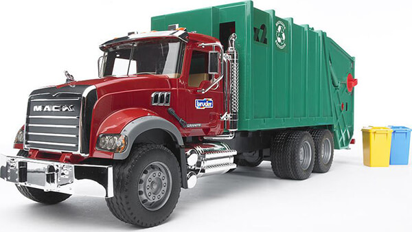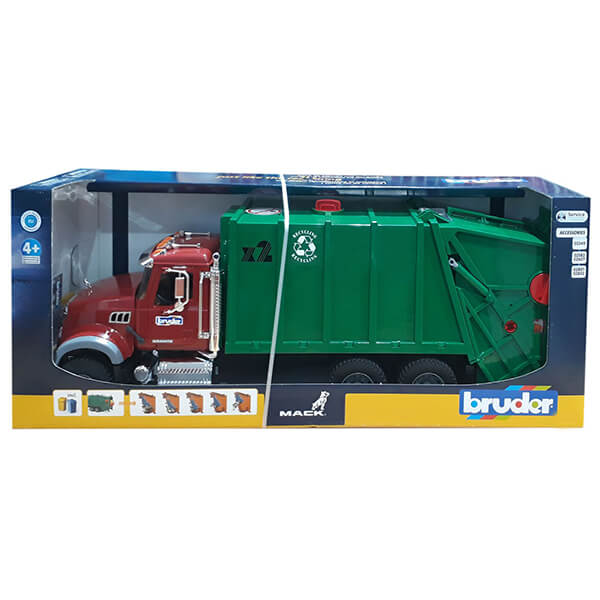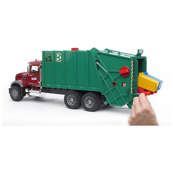 Η ρεαλιστική καμπίνα του οδηγού με τις πόρτες που ανοίγουν, το ανακλινόμενο καπό του κινητήρα, που παρέχει θέα στο μπλοκ του κινητήρα, οι αναδιπλούμενοι καθρέφτες και τα πολλά πρόσθετα αξεσουάρ, που δίνουν στο μοντέλο την εμφάνιση του χρωμίου, κάνουν αυτό το φορτηγό-απορριμματοφόρο ιδανικό για τα μάτια κάθε λάτρη του φορτηγού. Όταν χρησιμοποιείται ως απορριμματοφόρο, αυτό το φορτηγό καταφέρνει να συναρπάσει τα παιδιά με την ανακύκλωση και τη διαχείριση απορριμμάτων. Οι μικροί χρωματιστοί κάδοι απορριμμάτων (περιλαμβάνονται) ή οι γκρι κάδοι απορριμμάτων (δεν περιλαμβάνονται) μπορούν να αδειάσουν χρησιμοποιώντας έναν πλήρως λειτουργικό ανυψωτικό κάδου απορριμμάτων. Τόσο οι χρωματιστοί κάδοι απορριμμάτων όσο και το δοχείο απορριμμάτων μπορούν να ανοίξουν. Όπως και στην πραγματική ζωή, μια πρέσα εργασίας μεταφέρει τα σκουπίδια στο εσωτερικό δοχείο φόρτωσης, το οποίο μπορεί να αδειάσει γέρνοντας την πόρτα του χώρου αποσκευών. Η πόρτα του χώρου αποσκευών θα κλειδώσει στη θέση της όταν ανοίξει. Προτεινόμενη ηλικία: κατάλληλη από 4 ετών και πάνω για παιχνίδι σε εσωτερικούς και εξωτερικούς χώρους. Δεν είναι κατάλληλο για παιδιά κάτω των 36 μηνών. Κίνδυνος πνιγμού - μικρά εξαρτήματα.Yλικό: κατασκευασμένο από υψηλής ποιότητας πλαστικά όπως ABS.Κλίμακα: 1:16Διαστάσεις: 69.7 cm x 18.5 cm x 26.5 cm.Xρώμα: Κόκκινο/Πράσινο.Eγγύηση: 1 χρόνος.Εγγύηση: 2 χρόνια.