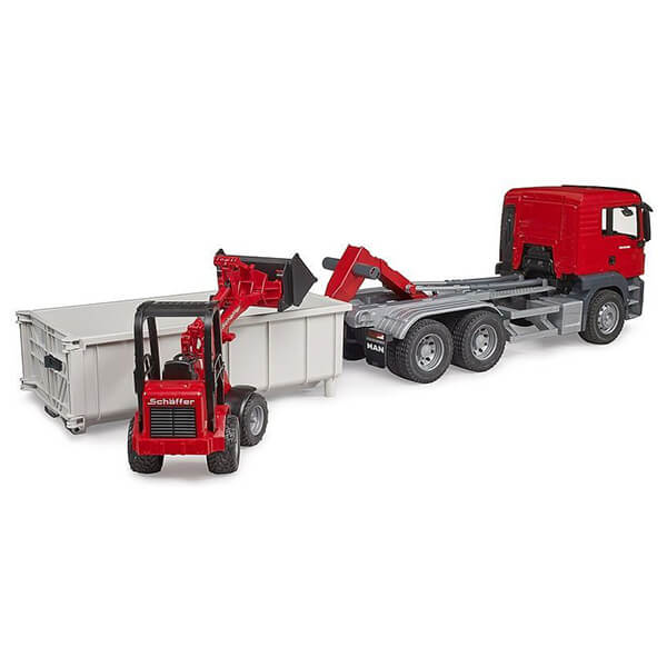 > > > BRUDER MAN TGS TRUCK WITH ROLL-OFF CONTAINER AND SCHΔFFER YARD LOADER