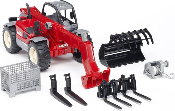 Φορτωτής με γερανό και διαφορετικά εξαρτήματα φόρτωσης. Χρησιμεύει στο να μεταφέρει υλικά και προϊόντα σε εργοτάξια ή αποθήκες. Επιτρέπει στο παιδί να διασκεδάζει, δημιουργώντας ευφάνταστα σενάρια σε εργασιακούς χώρους. -Ο βραχίονας μπορεί να επεκταθεί και να περιστραφεί μαζί με την καμπίνα. -Τα ''πιρούνια'' κατάλληλα για την ανύψωση παλετών ή κιβωτίων μπορούν να αντικατασταθούν με φορτωτή υλικών ή με τροχαλία. -Η κατεύθυνση του φορτηγού μπορεί να πραγματοποιηθεί μέσω της προέκτασης του τιμονιού που βρίσκεται στη κορυφή της καμπίνας. -Διαθέτει στηρίγματα που συγκρατούν το φορτηγό. -Προτεινόμενη ηλικία: κατάλληλο από 4 ετών και πάνω για παιχνίδι σε εσωτερικούς και εξωτερικούς χώρους. -Δεν είναι κατάλληλο για παιδιά κάτω των 36 μηνών. Κίνδυνος πνιγμού - μικρά εξαρτήματα. -Κατασκευασμένο από υψηλής ποιότητας πλαστικά όπως ABS. Κατάλληλη ηλικία: από 4 χρονών και πάνω.Κλίμακα μεγέθους: 1:16.Διαστάσεις: 52.7 x 16.8 x 20 cm.Χρώμα: Κόκκινο.Εγγύηση: 2 χρόνια. DOA 7 ημερών