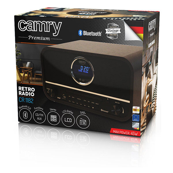 Στην εποχή της ανάπτυξης νέων τεχνολογιών, νέων όσον αφορά τους ραδιοφωνικούς δέκτες. Ο καθένας από εμάς στο σπίτι και στη δουλειά, μας αρέσει ο χρόνος να είναι ευχάριστος από μουσική ή αγαπημένα ραδιοφωνικά προγράμματα. Η χρήση της τεχνολογίας Bluetooth στο Radio CR 1182 του επιτρέπει να χρησιμοποιείται με μια συσκευή, με αναπαραγωγή μουσικής - smartphone, tablet ή υπολογιστή. Ο κομψός σχεδιασμός και το ξύλινο περίβλημα επιτρέπουν στο ραδιόφωνο να χωράει σε οποιοδήποτε εσωτερικό. Το ραδιόφωνο λαμβάνει εκπομπές σε κύματα FM, AM και DAB +. Η συσκευή είναι εξοπλισμένη με μια ευανάγνωστη οθόνη LCD. Χαρακτηριστικά: - Ξύλινο περίβλημα. - Κομψός σχεδιασμός. - 10μ. εμβέλεια Bluetooth. - DAB+. - FM. - CD. - Bluetooth 5.0. - AUX. - USB. - Ρολόι. - Stereo. - Οθόνη LCD. - Θύρα φόρτισης USB. - Μνήμη σταθμών. Ισχύς: 2x 15W.Μέγιστη ισχύς: 45W.Διαστάσεις: 17.5x21x31 cm.Χρώμα: Μαύρο.Εγγύηση: 2 χρόνια. DOA 7 ημερών