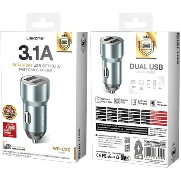 > > > CAR CHARGER WK 15W DUAL USB 3.1A TOURY DARK BLUE WP-C36