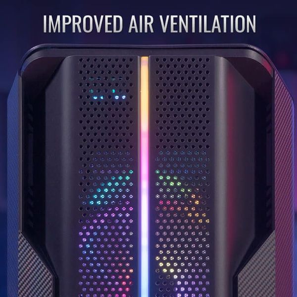 Το Splinter Duo είναι ένα εξαιρετικό κουτί μεσαίου μεγέθους που διαθέτει εντυπωσιακό σχέδιο ARGB στο μπροστινό πάνελ και πλήρες tempered glass πλαϊνό πάνελ για να επιδεικνύετε το εσωτερικό του υπολογιστή σας. Ο σχεδιασμός του μπροστινού πάνελ επιτρέπει αυξημένη ροή αέρα και καλή θέαση των μπροστινών LED ανεμιστήρων. Το κουτί διαθέτει τρεις 12cm ARGB ανεμιστήρες, δύο στον επάνω μέρος και έναν στο πίσω μέρος, με δυνατότητα ελέγχου του φωτισμού μέσω κουμπιού LED ή συμβατού ARGB motherboard.