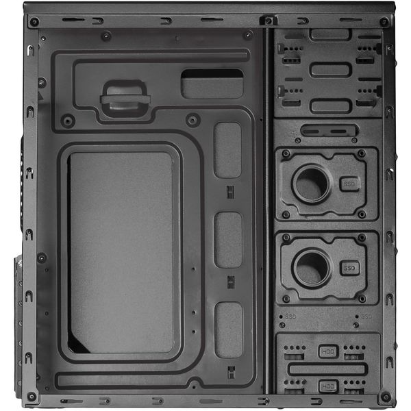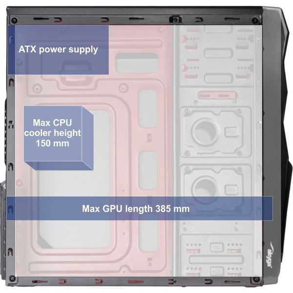 Το Akyga® AK995BK είναι ένα Midi ATX case σχεδιασμένο για παίκτες αλλά και για χρήση σε οικιακό ή επαγγελματικό περιβάλλον. Υποστηρίζει μητρικές ATX, Micro ATX, Flex ATX και Mini ITX και προσφέρει ευρύχωρο εσωτερικό για εγκατάσταση μεγάλων κάρτων γραφικών έως 385 mm. Το μπροστινό πάνελ από πλέγμα χάλυβα ενισχύει την κυκλοφορία αέρα, διατηρώντας τα κρίσιμα εξαρτήματα δροσερά. Η θήκη διαθέτει έναν εξωτερικό 5.25" bay για CD/DVD, τρεις εσωτερικούς 2.5" bays, τρεις 3.5" bays (μετατρέψιμες σε 2.5") και έναν εσωτερικό 5.25" bay, συνολικά επτά θέσεις για δίσκους και drives. Το σύστημα διαχείρισης καλωδίων διευκολύνει την εγκατάσταση, ενώ η θήκη επιτρέπει την τοποθέτηση δύο ανεμιστήρων (πλάγια 12 cm και πίσω 12 cm) και υποστηρίζει ύψος CPU cooler έως 150 mm. Στο μπροστινό πάνελ υπάρχουν δύο θύρες USB 2.0 και είσοδοι για ακουστικά και μικρόφωνο για εύκολη πρόσβαση σε περιφερειακές συσκευές.