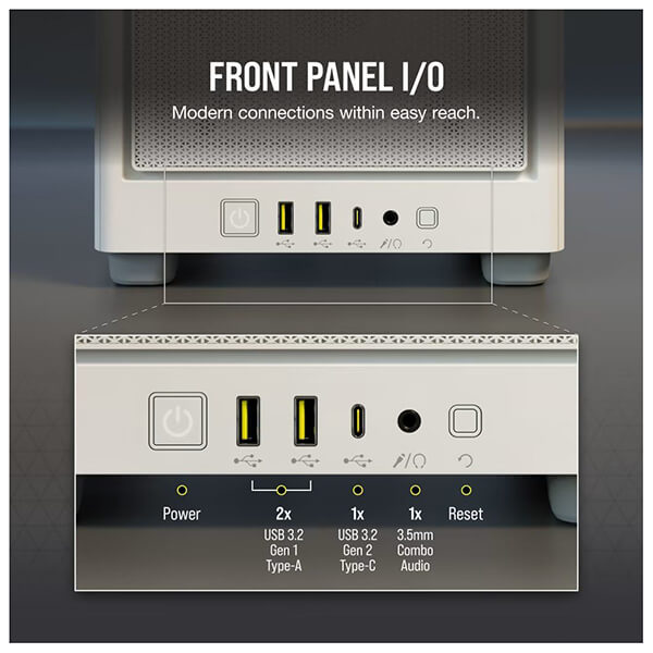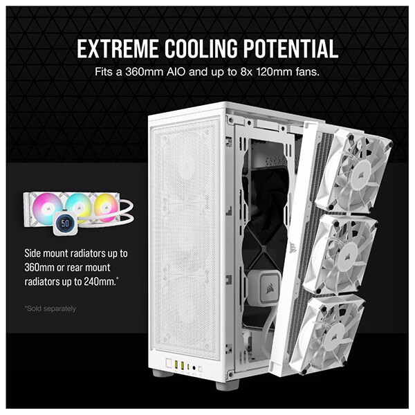 Το CORSAIR 2000D AIRFLOW είναι μια θήκη μικρού μεγέθους Mini-ITX με εκπληκτική ψύξη χάρη στα μπροστινά, πλαϊνά και πίσω πάνελ από ατσάλινο πλέγμα που παρέχουν άφθονο αερισμό στο σύστημά σας. -Αφήστε την GPU πλήρους μεγέθους να αναπνέει σε ένα βελτιστοποιημένο εσωτερικό που μπορεί να φιλοξενήσει έως και 8 x 120 mm ανεμιστήρες και δικτυωτά πάνελ ροής αέρα σε όλες τις πλευρές. -Υποστήριξη για πολλαπλούς ψύκτες AIO, συμπεριλαμβανομένων 360 mm στο πλάι και 240 mm στο πίσω μέρος (με GPU 1 υποδοχής). -Τα αφαιρούμενα μεταλλικά πλέγματα μπροστά, πλάι και στην οροφή προσφέρουν άφθονο αερισμό σχεδόν από όλες τις πλευρές του συστήματός σας για μέγιστη ψύξη. -Προσφέρει εύκολη σύνδεση, συμπεριλαμβανομένης μιας θύρας USB 3.2 Gen 2 Type-C, 2 x USB 3.2 Gen 1 Type-A και μιας συνδυαστικής υποδοχής ήχου/μικροφώνου. Τύπος: Mini-ITX.Συμβατά Corsair Liquid Coolers: H55, H60, H75, H80i, H90, H100i, H105, H110i, H115i, H150i.Συμβατά Radiators: 120mm, 140mm, 240mm, 280mm, 360mm.Θύρες επέκτασης: 3.Θέσεις δίσκων: 2.5" x3.Μέγιστο μήκος GPU: 365 mm.Μέγιστο ύψος ψύξης CPU: 165 mm.Μέγιστο μήκος PSU: 130 mm.Συνδεσιμότητα: 1x USB 3.2 Gen 2 Type C, 2x USB 3.2 Gen 1 Type A, 1x Audio in/out.Διαστάσεις (ΠxΥxΜ): 20 x 45.8 x 27.1 cm.Βάρος: 5.5 kg.Χρώμα: Λευκό.Εγγύηση: 2 χρόνια. DOA 7 ημερών