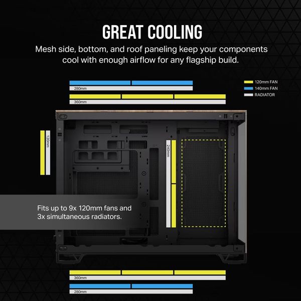 Η θήκη Corsair 2500X Micro ATX Dual Chamber PC Case προσφέρει μοντέρνο σχεδιασμό με προσαρμοζόμενα πάνελ Elite και εξαιρετική ροή αέρα χάρη στην κατασκευή διπλού θαλάμου. Οργανώστε εύκολα τη δική σας δυνατή κατασκευή, με κρυμμένα καλώδια, ψύξη υψηλής απόδοσης και άπλετο χώρο για προηγμένα εξαρτήματα. Διαστάσεις Θήκης: 376 x 469 x 304 mm Υποστηριζόμενες Μητρικές Κάρτες: Mini-ITX, Micro-ATX Μέγιστο Μήκος GPU: 400 mm Μέγιστο Ύψος Ψύκτρας CPU: 180 mm Σημεία Στήριξης Ψυγείων: Έως 360mm στο επάνω και κάτω μέρος, έως 240mm στο πλάι Σημεία Στήριξης Ανεμιστήρων: Υποστήριξη για έως 9x 120mm ή 6x 140mm ανεμιστήρες Εξωτερικές Συνδέσεις: 1x USB 3.2 Gen 2 Type-C, 2x USB 3.2 Gen 1 Type-A, Συνδυασμένη Υποδοχή Ήχου/Μικροφώνου Χρώμα: Μαύρο με ξύλινη πινελιά Με ενσωματωμένο tempered glass και συμβατότητα με τις μητρικές ASUS BTF και MSI Project Zero, η 2500X προσφέρει κορυφαία αισθητική και απόδοση, ιδανική για οποιαδήποτε σύγχρονη κατασκευή υπολογιστή. Εγγύηση: 2 έτη