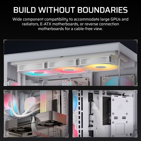 Το CORSAIR 3500X RS-R ARGB είναι ένα mid-tower case που συνδυάζει premium εμφάνιση, υψηλή ευελιξία και προηγμένη ψύξη, σχεδιασμένο για σύγχρονες gaming ή workstation συνθέσεις. Με πανοραμική όψη από διπλά tempered glass (μπροστά & πλάι), επιτρέπει πλήρη θέαση του συστήματος, ενώ η υποστήριξη για reverse-connector motherboards (ASUS BTF, MSI Project Zero, Gigabyte Stealth) εξασφαλίζει καθαρό και χωρίς καλώδια look. Περιλαμβάνει 3 ανεμιστήρες RS120-R ARGB με reverse rotor για καθαρή προβολή του φωτισμού και high-performance Magnetic Dome bearings. Με δυνατότητα τοποθέτησης έως και 10 ανεμιστήρων και ψυγείων έως 360mm στο πλάι και στην οροφή, το 3500X προσφέρει εξαιρετικές προοπτικές ροής αέρα και υδρόψυξης για high-end builds. Παρέχει επίσης άνετο cable-management με 45mm χώρο, αφαιρούμενα panel για εύκολο access, και ενσωματωμένο GPU anti-sag arm για προστασία των βαριών καρτών γραφικών.