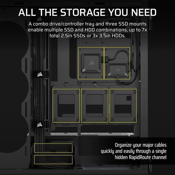 - Σύστημα Διαχείρισης Καλωδίων: Corsair RapidRoute με 46mm χώρου για καλώδια.