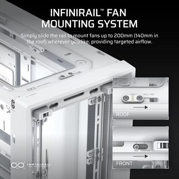 Το CORSAIR FRAME 4000D Mid-Tower PC Case είναι μια προηγμένη και ευέλικτη θήκη mid-tower, ιδανική για όσους επιθυμούν να συναρμολογήσουν ένα σύστημα υψηλών επιδόσεων με σύγχρονη και κομψή εμφάνιση. Διαθέτει το καινοτόμο σύστημα στήριξης ανεμιστήρων InfiniRail και υποστηρίζει πολλαπλές ψύκτρες 360 mm, προσφέροντας εξαιρετικές δυνατότητες ψύξης. Επιπλέον, το FRAME 4000D υποστηρίζει τεχνολογίες εξαιρετικής διαχείρισης καλωδίων και συμβατότητα με σύγχρονες μητρικές πλακέτες για απόλυτα τακτοποιημένες και καθαρές συναρμολογήσεις. Περιλαμβάνει επίσης ενσωματωμένα φίλτρα σκόνης για εύκολη συντήρηση και καθαρότητα του συστήματος. Διαστάσεις Κουτιού: 487 x 239 x 486 mm Υποστηριζόμενες Μητρικές Κάρτες: Mini-ITX, Micro-ATX, ATX, E-ATX (305 x 277 mm) Μέγιστο Μήκος GPU: 430 mm Μέγιστο Ύψος Ψύκτρας CPU: 170 mm Αντικραδασμική Προστασία και Χώρος Καλωδίωσης: Επαρκής χώρος για καλώδια με πλήρη δυνατότητα διαχείρισης Μονάδες Αποθήκευσης: 2x HDD, 4x SSD Σημεία Στήριξης Ανεμιστήρων: Μπροστά, πάνω, και πλάι με υποστήριξη για ψύκτρες έως 360mm Εξωτερικές Συνδέσεις: USB 3.2 Gen 2 Type-C, USB 3.2 Gen 1 Type-A, Συνδυασμένη Υποδοχή ΉχουΕγγύηση: 2 Χρόνια. DOA 7 ημερών