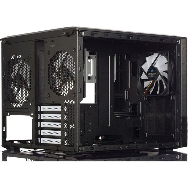 Το Node 804 είναι ένα Micro ATX κουτί το οποίο επικεντρώνεται στην απόδοση ψύξης και μέγιστη παραμετροποίηση, όλα σε μια ενδιαφέρουσα νέα μορφή με σκανδιναβικό κομψό σχεδιασμό. Η διπλή διάταξη θαλάμου διαχωρίζει τα θερμά εξαρτήματα λειτουργίας από τα πιο δροσερά και επιτρέπει την απεριόριστη ροή του αέρα πάνω από τη μητρική πλακέτα, επεξεργαστή και κάρτα γραφικών. Το κουτί έρχεται με τρεις ανεμιστήρες 120mm, αλλά μπορεί να αναβαθμιστεί με πρόσθετους, αν χρειαστεί. Με πολλές επιλογές για την τοποθέτηση εξαρτημάτων ψύξης νερού, ψηλός απαγωγείς θερμότητας και σκληρούς δίσκους. Η ευελιξία πραγματικά δίνει στους χρήστες τη δυνατότητα να δημιουργήσουν ενα σύστημα ακριβώς όπως το επιθυμούν. Υποστηριζόμενες μητρικές κάρτες: Micro ATX, Mini ITX.Τροφοδοτικό: Δεν διατίθεται.Θέσεις περιφερειακών: 8 x 3.5?, 4 x 2.5 ή έως 10 x 3.5, 2 x 2.5?.Κάρτα γραφικών: 290-320 mm.Σύστημα ψύξης: Μπροστά: 4 x 120 mm.Υλικό κατασκευής: Χάλυβας/ Πλαστικό.Πάνελ με θύρες: 2 x USB 3.0, HD Audio.Υποδοχές επέκτασης: 5.Πρόσθετα χαρακτηριστικά: Τακτοποίηση καλωδίων με Velcro, Πλαινό παράθυρο.Μέγιστο ύψος ψήκτρας επεξεργαστή: 160 mm.Διαστάσεις (ΠxΒxΥ): 344 x 307 x 389 mm.Βάρος: 6 kg.Χρώμα: Μαύρο.Εγγύηση: 2 χρόνια. DOA 7 ημερών