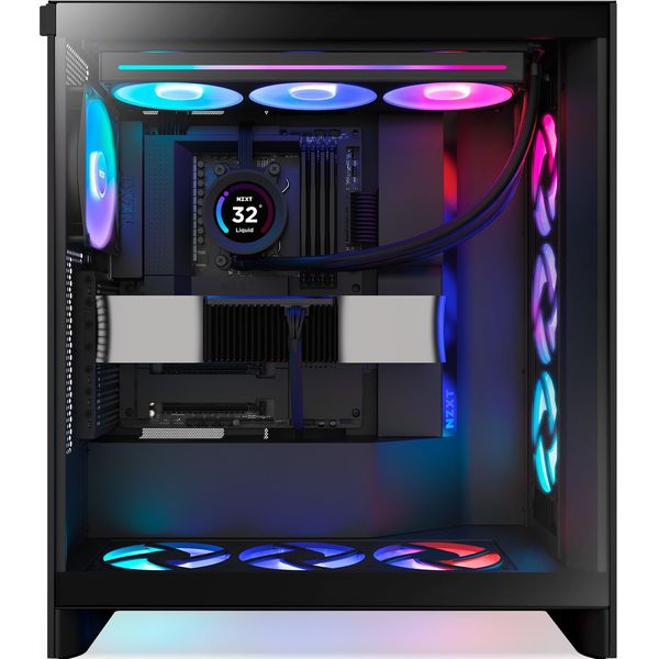 NZXT στην κατηγορία ΚΟΥΤΙΑ - CASES Αν ψάχνετε ένα κουτί που συνδυάζει κορυφαία ψύξη, άπλετο χώρο και εντυπωσιακό design με φωτισμό RGB, τότε το NZXT H7 Flow RGB είναι η ιδανική επιλογή. Πρόκειται για ένα mid-tower ATX case που δίνει έμφαση στην αποδοτική ροή αέρα χάρη στα υψηλής απόδοσης mesh panels και τον ευέλικτο σχεδιασμό για έως και 10 ανεμιστήρες. Ο κατακόρυφος σχεδιασμός PSU απελευθερώνει χώρο για τρεις επιπλέον ανεμιστήρες στο κάτω μέρος, που προσφέρουν άμεση ψύξη στην κάρτα γραφικών χωρίς να μεγαλώνει το πλάτος του κουτιού. Η προεγκατεστημένη μονάδα F360 RGB Core προσφέρει εξαιρετική ψύξη και εντυπωσιακό φωτισμό out-of-the-box, δημιουργώντας ένα μοναδικό gaming setup. Η γυάλινη πλαϊνή πρόσοψη αναδεικνύει τα εσωτερικά εξαρτήματα, ενώ το εργονομικό σύστημα διαχείρισης καλωδίων με κανάλια και λωρίδες Velcro κάνει τη συναρμολόγηση απλή και καθαρή. Με υποστήριξη για μεγάλες κάρτες γραφικών, AIO έως 420mm και εύκολη πρόσβαση χάρη στα tool-less panels, το H7 Flow RGB είναι μία από τις πιο ολοκληρωμένες λύσεις για gamers που θέλουν υψηλές επιδόσεις και μοντέρνα αισθητική.