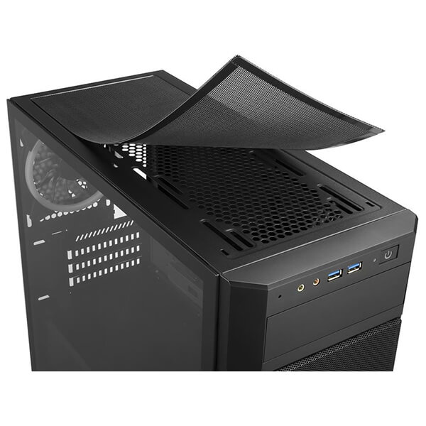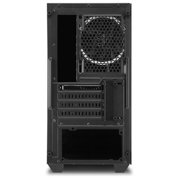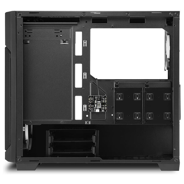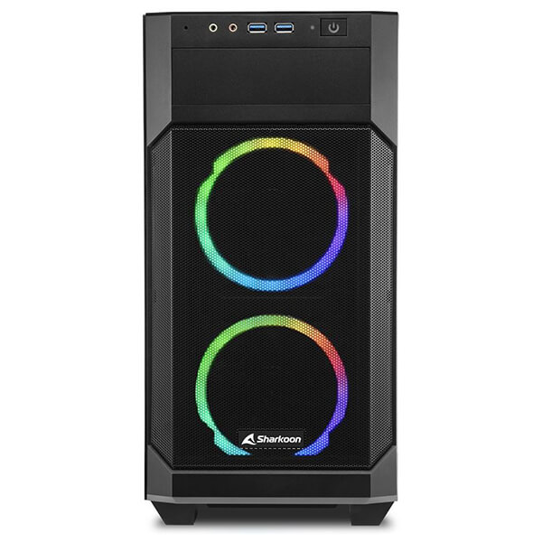 Κουτί υπολογιστή της Sharkoon V1000 RGB με πλαϊνό παράθυρο από σκληρυμένο γυαλί και τρείς ανεμιστήρες RGB LED 120 mm. Στο εσωτερικό αυτού του micro-ATX κουτιού υπάρχει χώρος για μεγάλα εξαρτήματα όπως μια κάρτα γραφικών με μήκος έως και 40 cm. -Τρεις ανεμιστήρες LED 120 mm RGB είναι ήδη τοποθετημένοι στο μπροστινό και το πίσω μέρος του V1000 RGB, ενώ το επάνω μέρος της θήκης προσφέρει χώρο για έως και τρεις ανεμιστήρες 120 mm ή δύο ανεμιστήρες 140 mm. Με αφαιρούμενα φίλτρα σκόνης στο επάνω, μπροστινό και κάτω πάνελ, τα εξαρτήματα προστατεύονται καλά και το περίβλημα παραμένει καθαρό. -Το πλαϊνό παράθυρο από σκληρυμένο γυαλί προσφέρει ορατότητα, ειδικά στα φωτιζόμενα εξαρτήματα. Είναι κατάλληλο για χρήση γραφείου καθώς και για παιχνίδια και μπορεί να χρησιμοποιηθεί ως συμπαγής σταθμός πολυμέσων. Χαρακτηριστικά Τύπος: Mini Tower.Form Factor: Micro-ATX.Συμβατές μητρικές: Mini-ITX, Micro-ATX.I/O: 2 x USB 3.0.Υποδοχές 5.25'': 1.Υποδοχές 3.5'': 3.Υποδοχές 2.5'': 6.Θύρες επέκτασης: 4.Προεγκατεστημένοι ανεμιστήρες: Μπροστά: 2 x 120 mm Addressable RGB LED, Πίσω: 1 x 120 mm Addressable RGB LED.Θέσεις ανεμιστήρων: Πάνω: 3x 120 mm ή 2x 140 mm.Μέγιστο ύψος ψύκτρας επεξεργαστή: 15.8 cm.Μέγιστο μήκος κάρτας γραφικών: 40 cm.Μέγιστο μήκος PSU: 24 cm.Μέγιστο ύψος radiator με ανεμιστήρα (Πάνω): 5.9 cm.Φωτισμός: RGB πολλαπλών χρωμάτων.Διαστάσεις: 45 x 20 x 40.2 cm.Βάρος: 5.85 kg.Χρώμα: Μαύρο.Εγγύηση: 2 χρόνια. DOA 7 ημερών