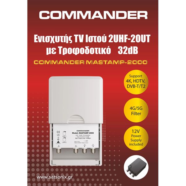 COMMANDER MASTAMP-2000 ΕΝΙΣΧΥΤΗΣ TV ΙΣΤΟΥ ΜΕ ΤΡΟΦΟΔΟΤΙΚΟ 32DB