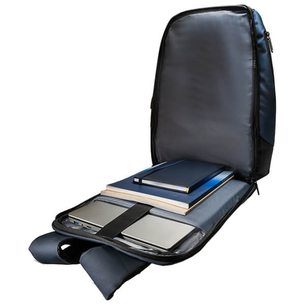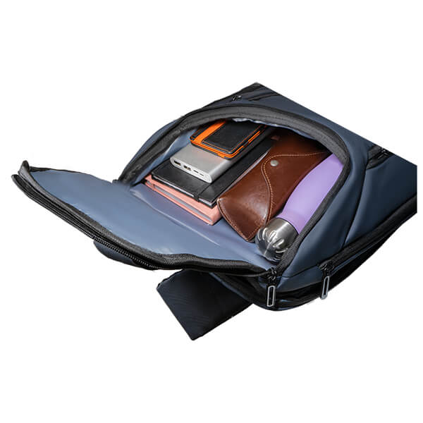 Η κυρίως εσωτερική θήκη ανοίγει από το πάνω μέρος με φερμουάρ σε σχήμα U που σας δίνει εύκολη πρόσβαση σε έναν ενιαίο χώρο διαστάσεων 30x40x10cm. Σε επόμενη ξεχωριστή θήκη πίσω από αυτή, η οποία ανοίγει πλήρως περιμετρικά, θα βρείτε τον ειδικό χώρο όπου μπορεί να φιλοξενηθεί ένα laptop 15.6 ιντσών και άλλα λεπτά αντικείμενα όπως ένα βιβλίο η κάποια περιοδικά. Τέλος δεν λείπει μια κρυφή θήκη ασφαλείας στην πλάτη της τσάντας κατάλληλη για να τοποθετήσετε χρήματα ή στοιχεία ταυτότητας, καθώς όταν φοράτε το σακίδιο αυτή η θήκη ακουμπάει στην πλάτη σας και είναι απροσπέλαστη από κάποιον τρίτο.