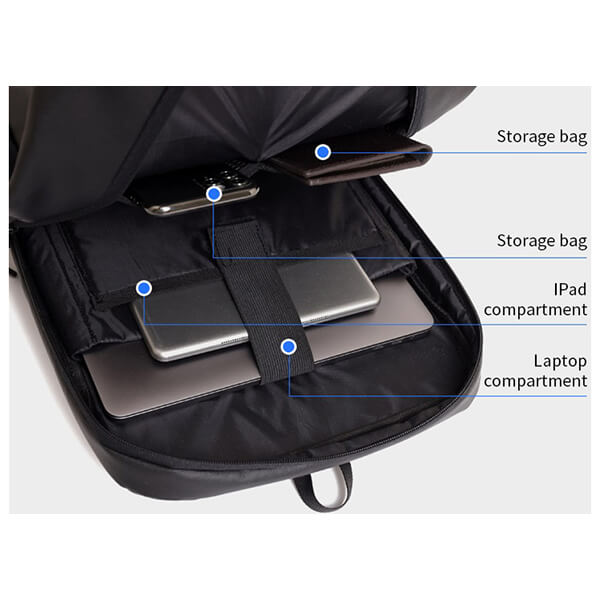 Φόρτιση USB Η εξωτερική θύρα USB δίνει τη δυνατότητα να έχετε μόνιμα συνδεδεμένο εσωτερικά το powerbank σας και να συνδέετε εξωτερικά τις ηλεκτρονικές σας συσκευές όποτε χρειάζεται να τις φορτίσετε χωρίς να πρέπει να ανοίξετε την τσάντα!.