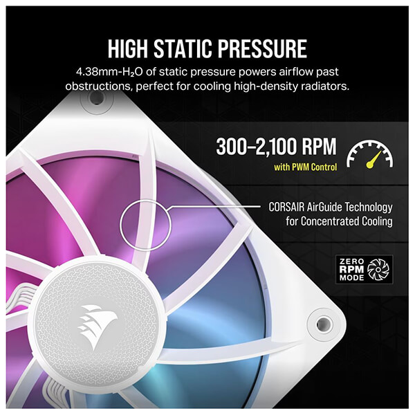 Σετ με 3 ανεμιστήρες 120mm της Corsair με RGB φωτισμό, υψηλή στατική πίεση και ακριβή έλεγχο ταχύτητας με σύνδεση PWM. -Με ελεγχόμενες ταχύτητες PWM μέσω iCUE LINK. Ρυθμίστε ακριβείς ταχύτητες ανεμιστήρα έως και 2100 στροφές ανά λεπτό, παρέχοντας ταυτόχρονα ροή αέρα έως και 73.5 CFM στο σύστημά σας. -Με στατική πίεση 4.33 mm-H20, η σειρά RX είναι ιδανική για την προώθηση του αέρα μέσα από εμπόδια. -Μεταφέρει τον αέρα μέσα στο κουτί σε χαμηλές, μεσαίες και υψηλές ταχύτητες. Οι ανεμιστήρες της σειράς RX παρέχουν υψηλή ροή αέρα και στατική πίεση, διατηρώντας παράλληλα τον θόρυβο όσο το δυνατόν χαμηλότερο. -Το σχήμα αεροτομής των πτερυγίων και η καμπυλότητα των άκρων τους, εξασφαλίζει μέγιστη απόδοση ροής αέρα. -Τα πτερύγια είναι κατασκευασμένα από πολυμερές υγρού κρυστάλλου, κάτι που προσδίδει εξαιρετική ακαμψία, μείωση των κραδασμών και αύξηση της απόδοσης. -Το ρουλεμάν του ανεμιστήρα ελαχιστοποιεί την τριβή και τον μηχανικό θόρυβο, επιτυγχάνοντας μια ισορροπία μεταξύ υψηλής απόδοσης ροής αέρα και χαμηλού ακουστικού αποτυπώματος. -Το πλαίσιο είναι ενισχυμένο και είναι ικανό να αντέχει σε υψηλότερες θερμοκρασίες, εφοδιασμένο με αποσβεστήρες κραδασμών για τη μείωση του θορύβου. -Δημιουργήστε αυτοματοποιημένη λειτουργία του ανεμιστήρα με το ισχυρό λογισμικό CORSAIR iCUE, για έξυπνη ψύξη που ανταποκρίνεται στις ανάγκες του συστήματός σας. Χαρακτηριστικά Μέγεθος: 120 x 25mm.Τεμάχια: 3.Ταχύτητα: έως 2100 rpm.Ροή αέρα: 10.4 - 73.5 CFM.Στατική πίεση: 0.12 - 4.33 mm-H20.Επίπεδα θορύβου: 10 - 36 dBA.Φωτισμός: RGB.Έλεγχος: PWM.Ρεύμα: 0.66A.Βάρος (1 ανεμιστήρας): 250 g.Χρώμα: Λευκό.Εγγύηση: 5 χρόνια. DOA 7 ημερών