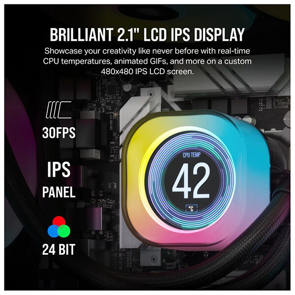 Μονάδα οθόνης LCD iCUE LINK, Μαύρη. -Μια προσαρμοσμένη οθόνη IPS LCD 2,1" με ανάλυση 480x480 και εξαιρετικά φωτεινό οπίσθιο φωτισμό 600cd/m² εμφανίζει τη θερμοκρασία της CPU σε πραγματικό χρόνο, το αγαπημένο σας κινούμενο GIF, το πιο αστείο meme ή το λογότυπο της ομάδας σας στα 30 FPS σε περισσότερα από 16,7 εκατομμύρια χρώματα. -Εμφάνιση θερμοκρασιών CPU σε πραγματικό χρόνο, κινούμενα GIF και πολλά άλλα. -Εύκολη εγκατάσταση χωρίς εργαλεία με σχεδιασμό κουμπώματος. -Ελεγχος με λογισμικό CORSAIR iCUE. Tύπος: IPS LCD.Ανάλυση: 480x480.Διαστάσεις (Μ-Π-Υ): 75 x 75 36 mm.Εγγύηση: 5 χρόνια. DOA 7 ημερών