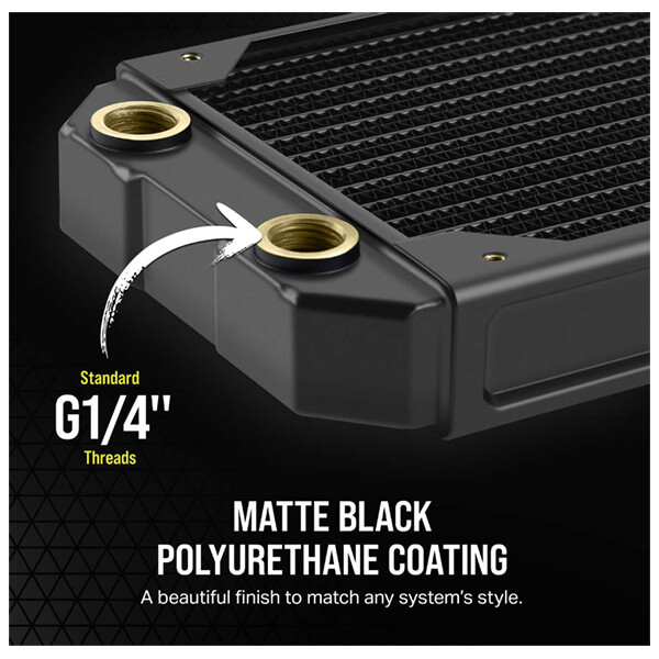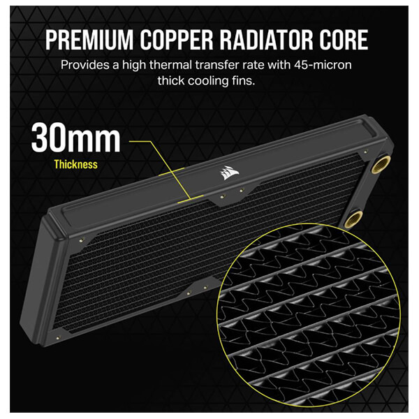 Το Hydro X Series XR5 240 NEO Water Cooling Radiator της CORSAIR προσφέρει εξαιρετική προσαρμοσμένη απόδοση ψύξης, με πάχος ψυγείου 30 mm και κορυφαίο πυρήνα χαλκού. -Επιτρέπει να εφαρμοστούν δύο ανεμιστήρες 120 χιλιοστών. -Το πάχος των 30 χιλιοστών προσφέρει εξαιρετική απόδοση ψύξης με ανεμιστήρες υψηλής ροής αέρα ή χαμηλού θορύβου. -Ένας κορυφαίος πυρήνας από χαλκό και τα πτερύγια ψύξης πάχους 45 micron παρέχουν υψηλό ρυθμό θερμικής μεταφοράς. -Οι βιδωτές πλάκες προστασίας εμποδίζουν από τις μεγάλες ή υπερβολικά σφιγμένες βίδες. -Υπάρχει συμβατότητα γενικής εφαρμογής για όλες τις θύρες εισόδου/εξόδου. Χαρακτηριστικά Είδος: Radiator.Υλικό: Χαλκός/Ορείχαλκος.Σπείρωμα: G1/4'' BSPP.Βίδα σπειρώματος: M4xP0.7.Διάκενο πτερυγίων: 14 FPI 45 Micron Copper Fins.Αριθμός ανεμιστήρων: 2.Συμβατότητα μεγέθους ανεμιστήρα: 120mm.Θερμοκρασία λειτουργίας: 60°C coolant temperature.Πάχος Radiator: 33mm.Εγγύηση: 3 χρόνια. DOA 7 ημερών