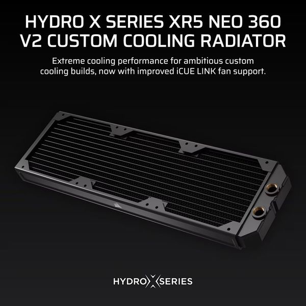 Το CORSAIR Hydro X Series XR5 NEO 360 V2 είναι ένα υψηλής απόδοσης ψυγείο custom υδρόψυξης, σχεδιασμένο για enthusiasts που αναζητούν κορυφαία θερμική απόδοση σε απαιτητικά συστήματα. Με πάχος 30mm και πτερύγια 25 micron, εξασφαλίζει άριστη απαγωγή θερμότητας ακόμη και σε ισχυρά loops με πολλαπλά blocks. Η υποστήριξη iCUE LINK επιτρέπει καθαρή διαχείριση καλωδίων και ευελιξία σε push-pull διαμορφώσεις, ενώ οι Screw Protection Plates αποτρέπουν τυχόν ζημιά στο core από υπερβολικό σφίξιμο. Η κατασκευή από χαλκό και ορείχαλκο εγγυάται αντοχή και μέγιστη θερμική αγωγιμότητα, καθιστώντας το XR5 NEO 360 V2 ιδανική επιλογή για high-end builds με στόχο τις χαμηλότερες δυνατές θερμοκρασίες. - Υλικό: Χαλκός / Ορείχαλκος