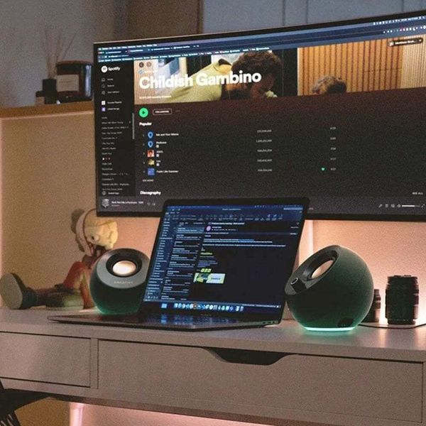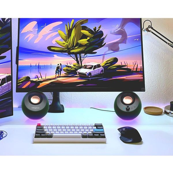 Τα ηχεία Creative Pebble Pro διαθέτουν RGB LED φωτισμό με διαφορετικά χρώματα και εφέ. Προσφέρουν πλούσιο και ισχυρό ήχο έτσι ώστε να απολαμβάνετε απόλυτα τη μουσική σας και να βυθίζεστε στην δράση της ταινία σας. -Επιλέξτε από μια σειρά από φώτα RGB LED και 3 εφέ φωτισμού και δημιουργήστε μια ρύθμιση που ταιριάζει στην αισθητική του γραφείου σας. -Χρησιμοποιώντας ένα ζεύγος ολοκαίνουργιων, ισχυρών ψηφιακών ενισχυτών με ενσωματωμένη επεξεργασία ήχου που επιτρέπουν να χειρίζονται υψηλότερη ισχύ εξόδου, το Creative Pebble Pro είναι σε θέση να προσφέρει εντυπωσιακές αποδόσεις ήχου σε όλα τα επίπεδα έντασης. χωρίς να περιορίζει την ευκρίνεια του ήχου. -Με μια ματιά, το Creative Pebble Pro φαίνεται να έχει τους ίδιους οδηγούς 2,25'' με τον προκάτοχό του στο Creative Pebble V3. Στην πραγματικότητα, έχουν αναθεωρηθεί από την αρχή με έναν ολοκαίνουργιο σχεδιασμό οδηγού για να επιτευχθεί περισσότερος χώρος για πιο δυνατή, καθαρότερη απόδοση ήχου και 3,5 φορές πιο πλούσια και βαθύτερα μπάσα. -Διαθέτοντας την τεχνολογία BassFlex, το Creative Pebble Pro είναι περισσότερο από ικανό να προσφέρει εκτεταμένη απόκριση χαμηλής συχνότητας και έντονα μπάσα, ακόμη και όταν η ένταση είναι χαμηλή. -Η επεξεργασία ήχου Clear Dialog του Creative Pebble Pro έχει βελτιωθεί περαιτέρω για την καθαρή απόδοση διαλόγων με φυσικό και ρεαλιστικό τρόπο. -Οι επιλογές συνδεσιμότητας στο Creative Pebble Pro είναι άφθονες! Με ένα μόνο καλώδιο USB τόσο για τροφοδοσία όσο και για ήχο, συνδέστε το καλώδιο στη συσκευή σας και απολαύστε αμέσως μια ενίσχυση ήχου. Ενώ είστε συνδεδεμένοι στο ρεύμα μέσω USB, έχετε επίσης τις επιλογές ασύρματης ροής μέσω Bluetooth 5.3 ή να τις συνδέσετε με άλλες αναλογικές συσκευές μέσω της καθολικής συμβατότητας θύρας AUX 3.5 mm. Χαρακτηριστικά Συνδεσιμότητα: USB, Bluetooth 5.3, 3.5 mm AUX-in.Ισχύς: 10W RMS.Peak Power: έως 20W.Κανάλια ήχου: 2.0 system.Drivers: 2.25'', πλήρους εμβέλειας.Τεχνολογίες ήχου: Clear Dialog, BassFlex.Απόκριση συχνότητας: 8020,000 Hz.Signal-to-Noise Ratio (SNR): ? 75 dB.Έκδοση Bluetooth: 5.3.Εμβέλεια: 10 m.Φωτισμός: RGB LED.Διαστάσεις: 123 x 123 x 118 mm.Βάρος: 365g.Χρώμα: Σκούρο πράσινο.Εγγύηση: 2 χρόνια. DOA 7 ημερών
