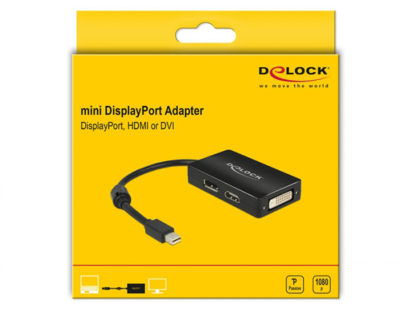 > > > DELOCK 62623 ADAPTER MINI DISPLAYPORT 1.1 MALE > DISPLAYPORT / HDMI / DVI FEMALE PASSIVE