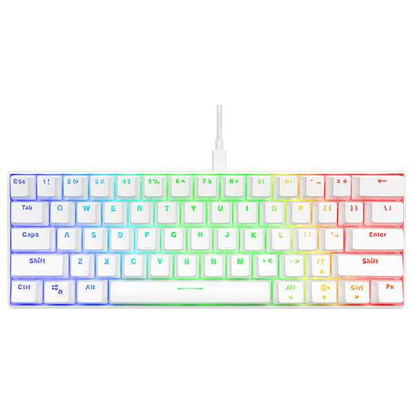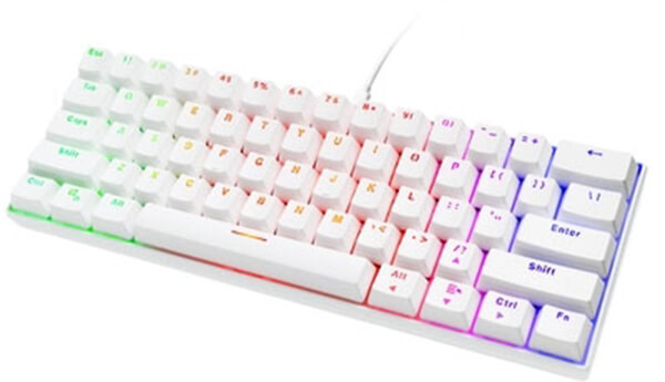 Η DELTACO GAMING παρουσιάζει το μικρότερο μηχανικό πληκτρολόγιο της σειράς. Αυτό το πληκτρολόγιο διαθέτει κόκκινους διακόπτες RGB, διάταξη ΗΠΑ, αλλά με σχεδίαση 60%, δηλαδή μόνο 61 πλήκτρα. Το space bar δεν χρησιμοποιεί jumper, αλλά πιέζεται εντελώς ευθεία, ανεξάρτητα από το αν πατήσετε στη μέση ή στο πλάι του πλήκτρου. Το πληκτρολόγιο έχει συνολικά 19 λειτουργίες φωτισμού (δεν περιλαμβάνονται οι λειτουργίες λογισμικού). Το χρώμα των περισσότερων λειτουργιών μπορεί να αλλάξει με (FN +.). Μπορείτε επίσης να αλλάξετε την ταχύτητα ή την ένταση του φωτός για τις διάφορες λειτουργίες. Όταν μια λειτουργία ταχύτητας ή έντασης έχει φτάσει στη χαμηλότερη / υψηλότερη λειτουργία, το πληκτρολόγιο αποκρίνεται αναβοσβήνοντας το Caps Lock και το πλήκτρο Windows. Χαρακτηριστικά: - Αριθμός πλήκτρων: 61. - Διάταξη ΗΠΑ 60%. - Κόκκινοι διακόπτες RGB. - RGB με λογισμικό. - N-Key Rollover. - Δύναμη ενεργοποίησης 45g ± 10g. - Double Injection keycaps. - 1,5m USB micro-B - καλώδιο USB-A. - Διάρκεια ζωής 50 εκατομμυρίων πλήκτρων. Διαστάσεις (ΠxΒxΥ): 290x100x30mm-42mm.Βάρος: 600g.Χρώμα: Λευκό.Εγγύηση: 2 χρόνια. DOA 7 ημερών