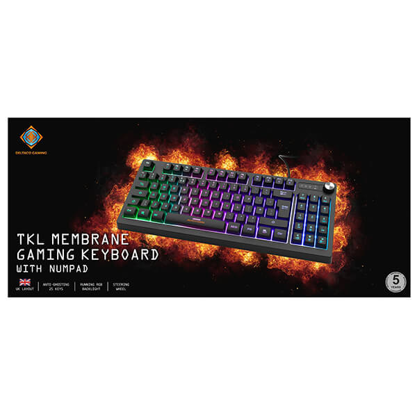 DELTACO GAM-110-UK GAMING ΠΛΗΚΤΡΟΛΟΓΙΟ ΜΕΜΒΡΑΝΗΣ ΕΝΣΥΡΜΑΤΟ TKL RGB UK LAYOUT ΜΑΥΡΟ