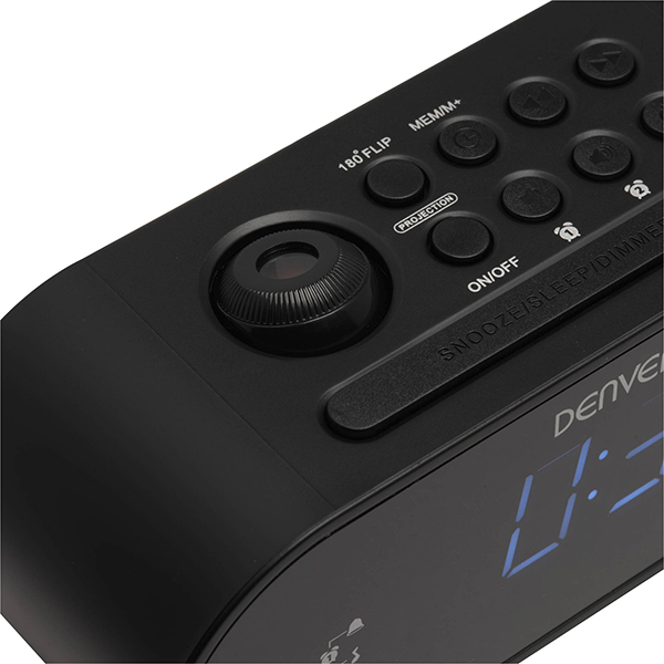 Ραδιορολόι DENVER CRP-717. Χαρακτηριστικά: - Ραδιόφωνο PLL FM με ρολόι προβολής. - Προκαθορισμένη μνήμη σταθμών. - Ρολόι προβολής 180° με ρύθμιση εστίασης. - Οθόνη LED 0,9". - Διπλό ξυπνητήρι με ακύρωση Σαββατοκύριακου. - Ξυπνήστε με ραδιόφωνο ή ηχητικό σήμα. - Λειτουργία αναβολής και ύπνου. Δέκτης: FM.Τροφοδοσία: 230V, 50Hz.Χρώμα: Μαύρο.Διαστάσεις: 160x60x70 mm.Βάρος: 0.48 Kg.Εγγύηση: 2 χρόνια. DOA 7 ημερών