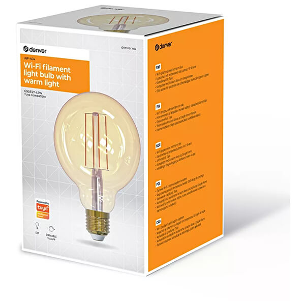 Δελτίο προιόντος Εξυπνος λαμπτήρας led με Wi-Fi έλεγχο. Μπορείτε απομακρυσμένα να ελέγξετε την ένταση του φωτός και την θερμοκρασία χρώματος. Χαρακτηριστικά Είδος φωτός: ζεστό.Λειτουργίες: ρύθμιση έντασης φωτός, έλεγχος θερμοκρασίας χρώματος, χρονοδιάγραμμα.Φωτεινότητα: 470lm.Θερμοκρασία χρώματος: 1800K-2700K.Έλεγχος: Tuya Smart.Φωνητικός έλεγχος: Amazon Alexa, Google home.Εφαρμογή: G95.Είδος: E27.Ισχύς: 4.9 W.Τάση: AC 220-240V, 50-60Hz.Ενεργειακή κλάση: F
