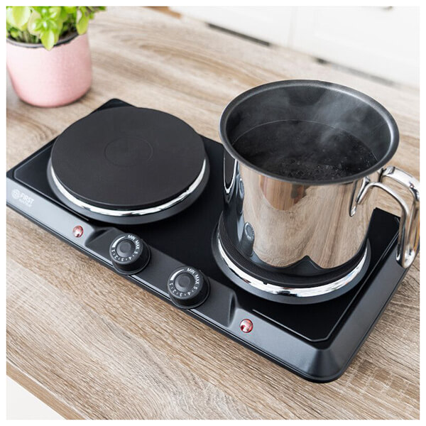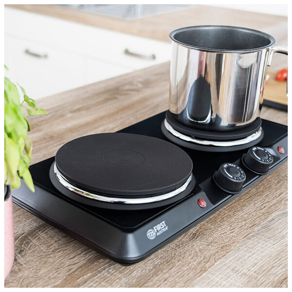 Οι ηλεκτρικές εστίες παρέχουν ζεστό φαγητό ακόμα και σε μια μικρή κουζίνα χωρίς ηλεκτρική κουζίνα: Το βράσιμο, το τηγάνισμα και ο ατμός είναι δυνατό στα δύο μάτια. Ο απλός σχεδιασμός της ηλεκτρικής συσκευής ταιριάζει σε κάθε κουζίνα και το εύχρηστο μέγεθος καθιστά εύκολη τη μεταφορά της - είτε για κάμπινγκ, είτε για διακοπές είτε για μετακόμιση, μπορείτε να ετοιμάσετε ένα νόστιμο γεύμα σε χρόνο μηδέν. Οι ισχυρές εστίες ρυθμίζονται η καθεμία με θερμοστάτη σε πέντε στάδια και είναι ιδανικές για να διατηρείτε το φαγητό ζεστό στην κατσαρόλα στο επόμενο πάρτι, ενώ συνεχίζετε να τηγανίζετε ένα άλλο πιάτο στο τηγάνι. Για ένα πρακτικό βοήθημα κουζίνας στο σπίτι και εν κινήσει. Μήκος καλωδίου: 105 cm.Διάμετρος πλακών μαγειρέματος: 185/150 mm.Διαστάσεις: 46 x 8,5 x 25 cm.Αριθμός προγραμμάτων: 5.Ισχύς: 2500 W.Βάρος: 3,4 Kg.Χρώμα: Μαύρο.Εγγύηση: 2 χρόνια.