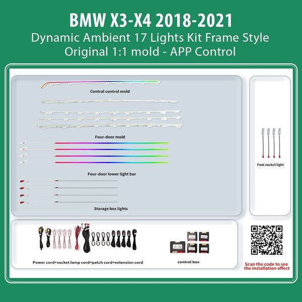 diq ambient 8173d u dynamic ambient light for bmw x3 x4 mod 2018 2021 with 17 lights dynamic extra photo 1