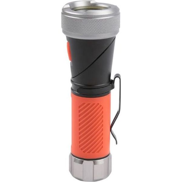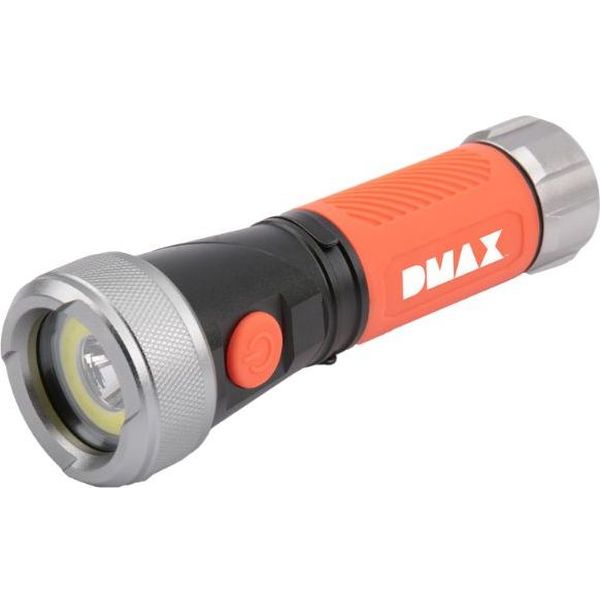 DMAX στην κατηγορία ΦΑΚΟΙ Υβριδικός φακός LED με περιστρεφόμενη κεφαλή 90° TLG 332. Στο επάνω μέρος υπάρχει ένα OSRAM LED με φωτεινότητα έως 200 lumens ως μεγάλη σκάλα και εύρος φωτισμού έως 70 μέτρα και ένας δακτύλιος COB ως προβολέας με φωτεινότητα 100 lumens. Πρόκειται για ένα εργαλείο με εξαιρετικά στιβαρό περίβλημα με επιφάνεια λαβής από καουτσούκ και προστασία από σκόνη και νερό. Διαθέτει τελευταίας τεχνολογίας LED, για χρόνο λειτουργίας άνω των 50.000 ωρών και χρόνο φωτισμού έως και 3 ώρες. Μπορείτε να ρυθμίσετε την φωτεινότητα ανάμεσα στις 4 λειτουργίες εναλλαγής (OFF - μεγάλη σκάλα 100% - μεσαία σκάλα 50% - προβολέας). Ο εργονομικός του σχεδιασμός με το ενσωματωμένο κλιπ συγκράτησης, τη λαστιχένια επιφάνεια λαβής και τον ισχυρό μαγνήτη στη βάση καθιστούν τον φακό ακόμα πιο εύκολο στη χρήση.