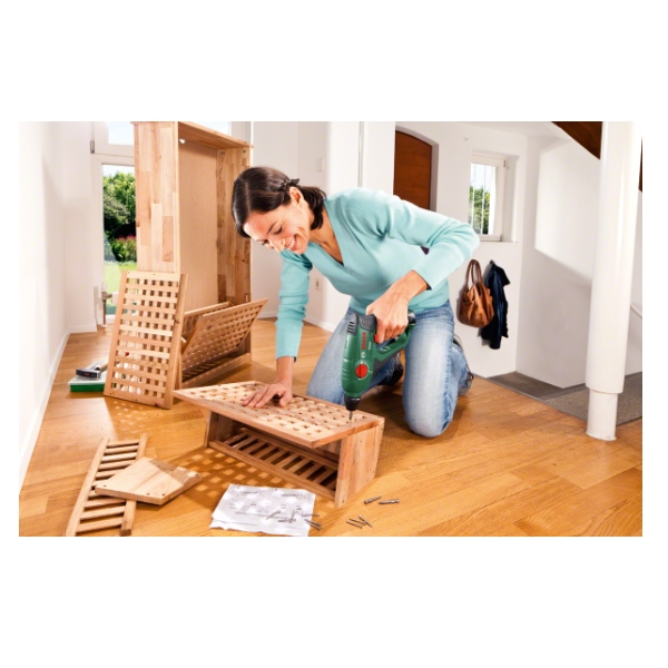 • Τρύπημα με κρούση σε μπετόν και τοιχοποιία, τρύπημα και βίδωμα με πνευματικό κρουστικό μηχανισμό Bosch.