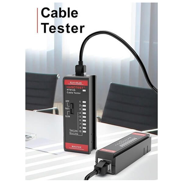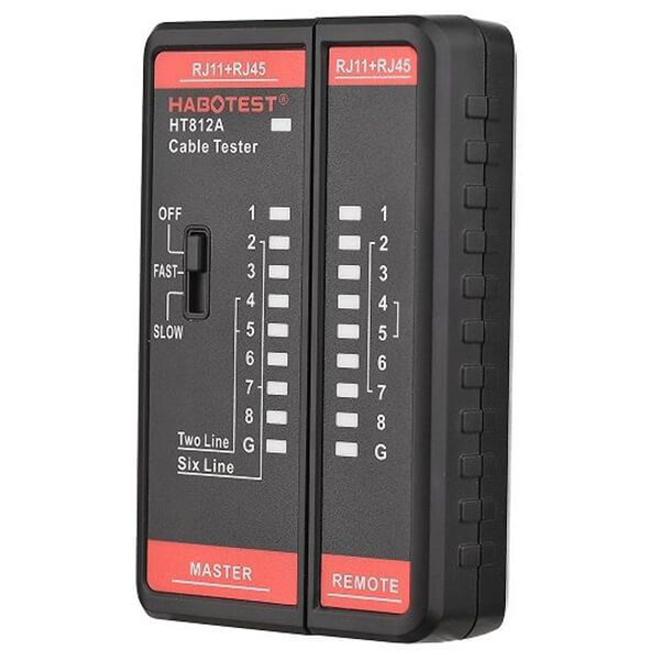Ελεγκτής καλωδίων Habotest HT812A. -Με τη βοήθεια του ελεγκτή καλωδίων Habotest HT812A, θα λάβετε με επιτυχία πληροφορίες σχετικά με την απόδοση των καλωδίων με υποδοχές RJ11 και RJ45. -Θα ελέγξετε εύκολα τις τιμές απόδοσης των καλωδίων τηλεφώνου και δικτύου. -Τροφοδοτείται από 2 μπαταρίες AAA. -Παρέχει τη δυνατότητα δοκιμής καλωδίων δικτύου 8P/6P/4P/2P και καλωδίων τηλεφώνου - διαθέτει θύρες RJ45 και RJ11. -Προσφέρει 2 δοκιμαστικές λειτουργίες - αργή και γρήγορη. Θα επαληθεύσετε με επιτυχία τη θωράκιση του καλωδίου ή θα επιβεβαιώσετε την παρουσία βραχυκυκλώματος. -Η συσκευή διακρίνεται για τη συμπαγή, αναδιπλούμενη σχεδίασή της, η οποία εγγυάται άνεση στη χρήση και τη μεταφορά. -Επιπλέον, έχει εξοπλιστεί με μια σειρά από LED, τα οποία είναι υπεύθυνα για την ξεκάθαρη ένδειξη των αποτελεσμάτων της δοκιμής. Ζωντανές μετρήσεις: Ναι.Αυτόματη απενεργοποίηση: Ναι.Ενδειξη χαμηλής ισχύος: Ναι.Μπαταρία: 2x ΑAA (δεν περιλαμβάνεται).Μέγεθος: 96 x 62 x 24 mm.Βάρος: 71 gr.Χρώμα: Μαύρο.Eγγύηση: 1 χρόνος.Εγγύηση: 2 χρόνια.