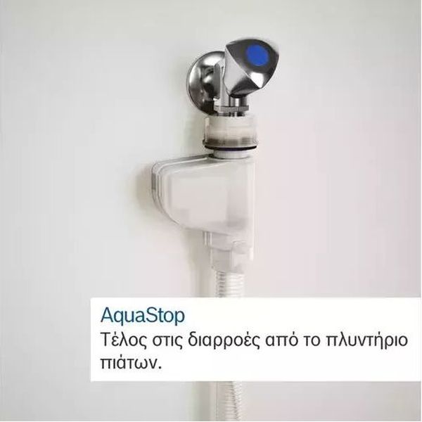 Το σύστημα AquaStop προστατεύει από διαρροές, ενώ οι αισθητήρες ρυπαρότητας και απορρυπαντικού προσαρμόζουν δυναμικά τη λειτουργία για μέγιστη απόδοση με ελάχιστη κατανάλωση.