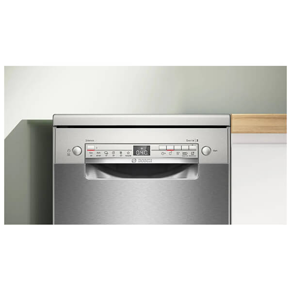 |  Δελτίο προιόντος Ελεύθερο πλυντήριο πιάτων 45 cm της Bosch, με χωρητικότητα 10 σερβίτσιων.-Με την ενεργοποίηση της επιλογής Extra Dry, τα πιάτα σας στεγνώνουν τέλεια με υψηλότερες θερμοκρασίες στον κύκλο ξεβγάλματος, ενώ το στέγνωμα διαρκεί περισσότερο. Και όλα αυτά με το πάτημα ενός κουμπιού.