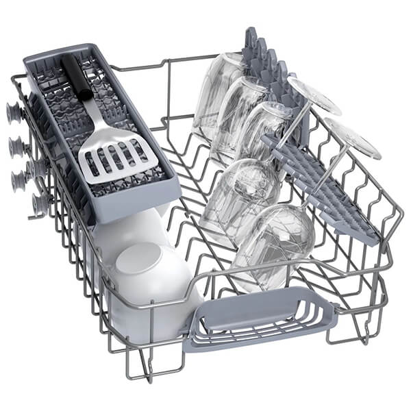 -Το άνω καλάθι των πλυντηρίων πιάτων Bosch ρυθμίζεται σε ύψος για να προσφέρει ακόμη περισσότερο διαθέσιμο χώρο, ειδικά όταν θέλετε να πλύνετε τα πιο ψηλά σκεύη σας.