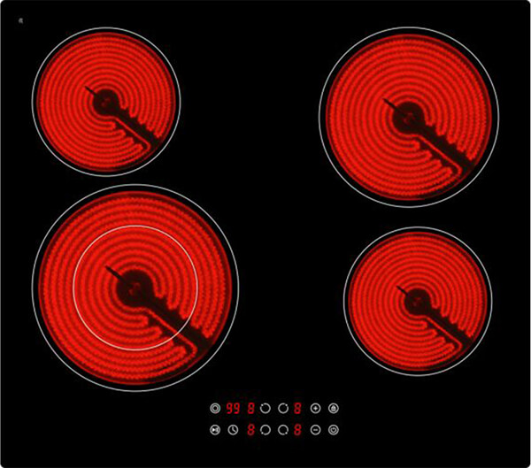 Εντοιχιζόμενη εστία κουζίνας Arielli ACH-593T, με 4 ζώνες μαγειρέματος. Είναι κεραμική με γυάλινη λεία επιφάνεια, η οποία όταν θερμαίνεται αλλάζει σε κόκκινο χρώμα. Θερμαίνεται πολύ γρήγορα και ομοιόμορφα χάρη στις θερμαντικές αντιστάσεις που βρίσκονται κάτω από την επιφάνειά της. Επίσης ο καθαρισμός της είναι πιο εύκολος, σε σχέση με τις κλασικές εμαγιέ εστίες. Η λειτουργία της είναι αυτόνομη, δηλαδή μπορεί να λειτουργήσει μόνη της χωρίς την ανάγκη για σύνδεση με φούρνο. Αυτό σημαίνει ότι μπορεί να τοποθετηθεί σε οποιοδήποτε σημείο της κουζίνας που σας εξυπηρετεί καλύτερα. Είναι κατάλληλη για συνδυασμό με φούρνο άνω πάγκου, αφού ο φούρνος μπορεί να τοποθετηθεί οπουδήποτε, ανεξάρτητα από τις εστίες.