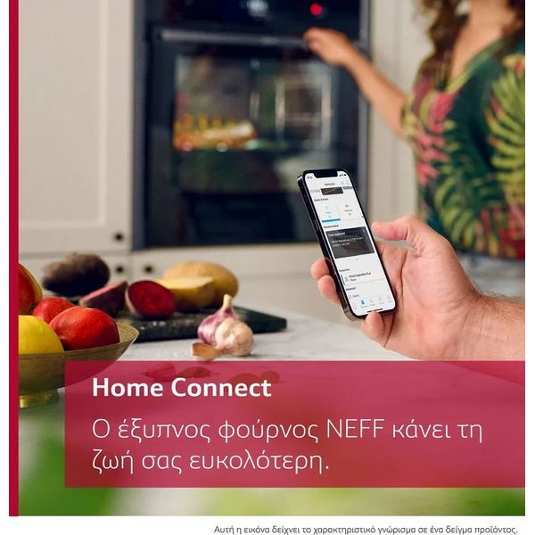 Πλήρης έλεγχος από το κινητό σας Συνδέστε τον φούρνο με την εφαρμογή Home Connect για να τον ελέγχετε από απόσταση. Ρυθμίστε θερμοκρασία, λάβετε ειδοποιήσεις και ενημερώσεις, ακόμα και με φωνητικό έλεγχο μέσω Alexa ή Google Assistant.