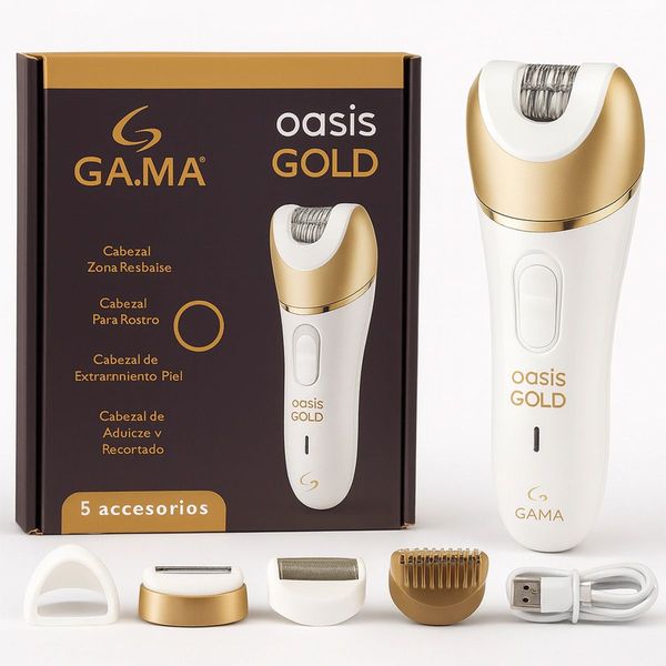 Η επαναφορτιζόμενη αποτριχωτική μηχανή/epilator Oasis Gold από την GAMA συνδυάζει αποτελεσματικότητα και άνεση, προσφέροντας λεία επιδερμίδα που διαρκεί έως και 4 εβδομάδες. Διαθέτει δύο αποσπώμενες κεφαλές - αποτριχωτική για ακριβές και απαλό αποτέλεσμα και ξυριστική για βαθύ ξύρισμα ακόμη και στις πιο ευαίσθητες περιοχές. Με 2 ταχύτητες λειτουργίας, ειδικά καλύμματα για πρόσωπο, μασχάλες και μπικίνι, καθώς και εξάρτημα skin stretcher που μειώνει την αίσθηση τραβήγματος, προσαρμόζεται στις ανάγκες κάθε χρήσης. Ο ενσωματωμένος LED φωτισμός προσφέρει καλύτερη ορατότητα, ενώ η εργονομική λαβή και η ασύρματη λειτουργία με αυτονομία 60 λεπτών κάνουν την όλη εμπειρία ακόμη πιο άνετη. Συνοδεύεται από πρακτικά αξεσουάρ, όπως θήκη μεταφοράς, βουρτσάκι καθαρισμού και καλώδιο USB.