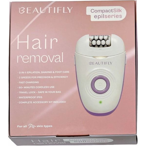 Η επαναφορτιζόμενη συσκευή CompactSilk της Beautifly συνδυάζει αποτριχωτική, ξυριστική κεφαλή και κεφαλή περιποίησης για κάλους/φτέρνες, προσφέροντας ολοκληρωμένη φροντίδα. Είναι ιδανική για πόδια, χέρια, μασχάλες, μπικίνι και πρόσωπο, ενώ διαθέτει 2 ταχύτητες λειτουργίας για προσαρμογή στις ανάγκες κάθε περιοχής. Το ειδικό κάλυμμα αποτριχωτικής κεφαλής επιτρέπει πιο στοχευμένη χρήση σε ευαίσθητες ζώνες, ενώ ο ενσωματωμένος LED φωτισμός εξασφαλίζει μεγαλύτερη ακρίβεια κατά την αποτρίχωση. Με προστασία IPX5 για χρήση σε υγρή ή στεγνή επιδερμίδα, αυτονομία 60+ λεπτών και γρήγορη φόρτιση σε 90 λεπτά, προσφέρει άνεση, ασφάλεια και πρακτικότητα, ιδανική τόσο για καθημερινή χρήση όσο και για ταξίδια χάρη στη λειτουργία Travel Lock.