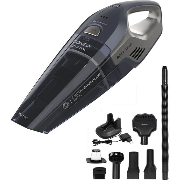 Επαναφορτιζόμενο ηλεκτρικό σκουπάκι χειρός 25.2V για τον καθαρισμό υγρών και στερεών ρύπων, από τη Cecotec! Προσφέρει αποτελεσματικό και άνετο καθαρισμό, χάρη στο ψηφιακό Brushless μοτέρ χωρίς ψήκτρες, που εξασφαλίζει μεγαλύτερη ταχύτητα λειτουργίας, μειωμένο θόρυβο και αυξημένη διάρκεια ζωής. Με μέγιστη ισχύ 200 W και πίεση αναρρόφησης έως 20 kPa, απομακρύνει εύκολα κάθε τύπο ρύπου από όλες τις επιφάνειες, ενώ η τεχνολογία Wet&Dry το καθιστά ιδανικό τόσο για υγρά όσο και για στερεά υπολείμματα. Παράλληλα, η κυκλωνική τεχνολογία (Cyclonic system) συμβάλλει στη διατήρηση της ισχύος αναρρόφησης, ενώ το φίλτρο υψηλής απόδοσης συγκρατεί μικροσωματίδια, ακάρεα και σκόνη. Διαθέτει ανθεκτική επαναφορτιζόμενη μπαταρία ιόντων λιθίου 25.2 V / 2200 mAh με αυτονομία έως 40 λεπτά και χρόνο φόρτισης έως 5 ώρες και πλούσια αξεσουάρ. Με χωρητικότητα δοχείου 0.5 Lt, εργονομική λαβή για άνετο κράτημα και χρήσιμα αξεσουάρ, αποτελεί ιδανική επιλογή για το σπίτι, το εξοχικό, το γραφείο και το αυτοκίνητο. Περιλαμβάνει εξάρτημα για κατοικίδια και πλούσια αξεσουάρ για τον καθαρισμό γωνιών και επίπλων.