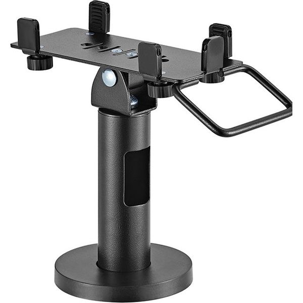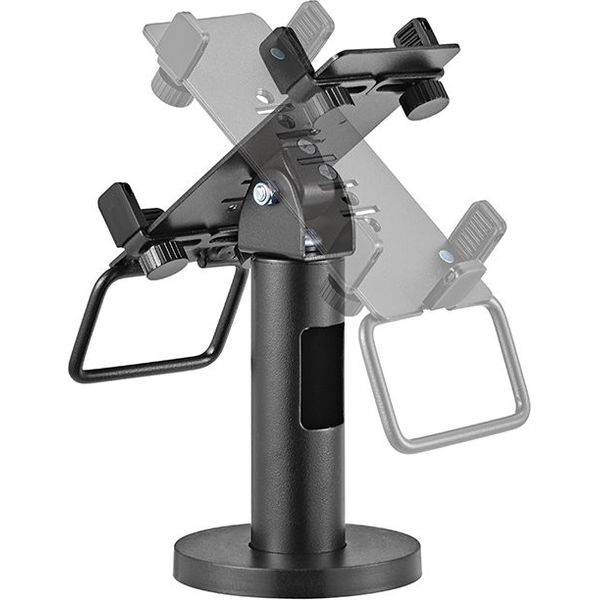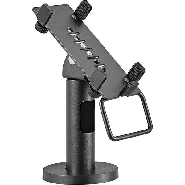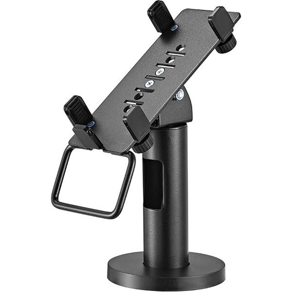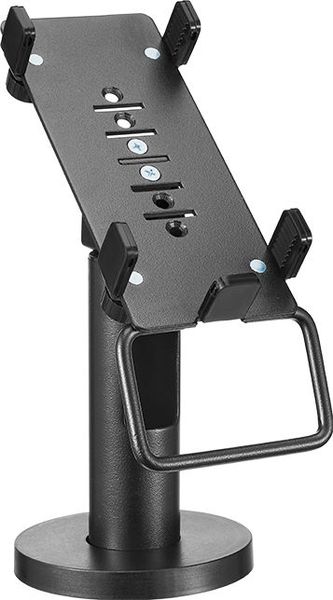 Universal επιτραπέζια βάση για τερματικά μηχανήματα POS με ρύθμιση κλίσης και οριζόντια περιστροφή. Η universal επιτραπέζια βάση στήριξης SONORA για τερματικά μηχανήματα POS είναι κατασκευασμένη από ανθεκτικό ατσάλι, αλουμίνιο και πλαστικό. Διαθέτει 4 κλιπ ασφαλούς συγκράτησης της συσκευής, με σιλικόνη, για την προστασία της συσκευής από χτυπήματα και κραδασμούς.